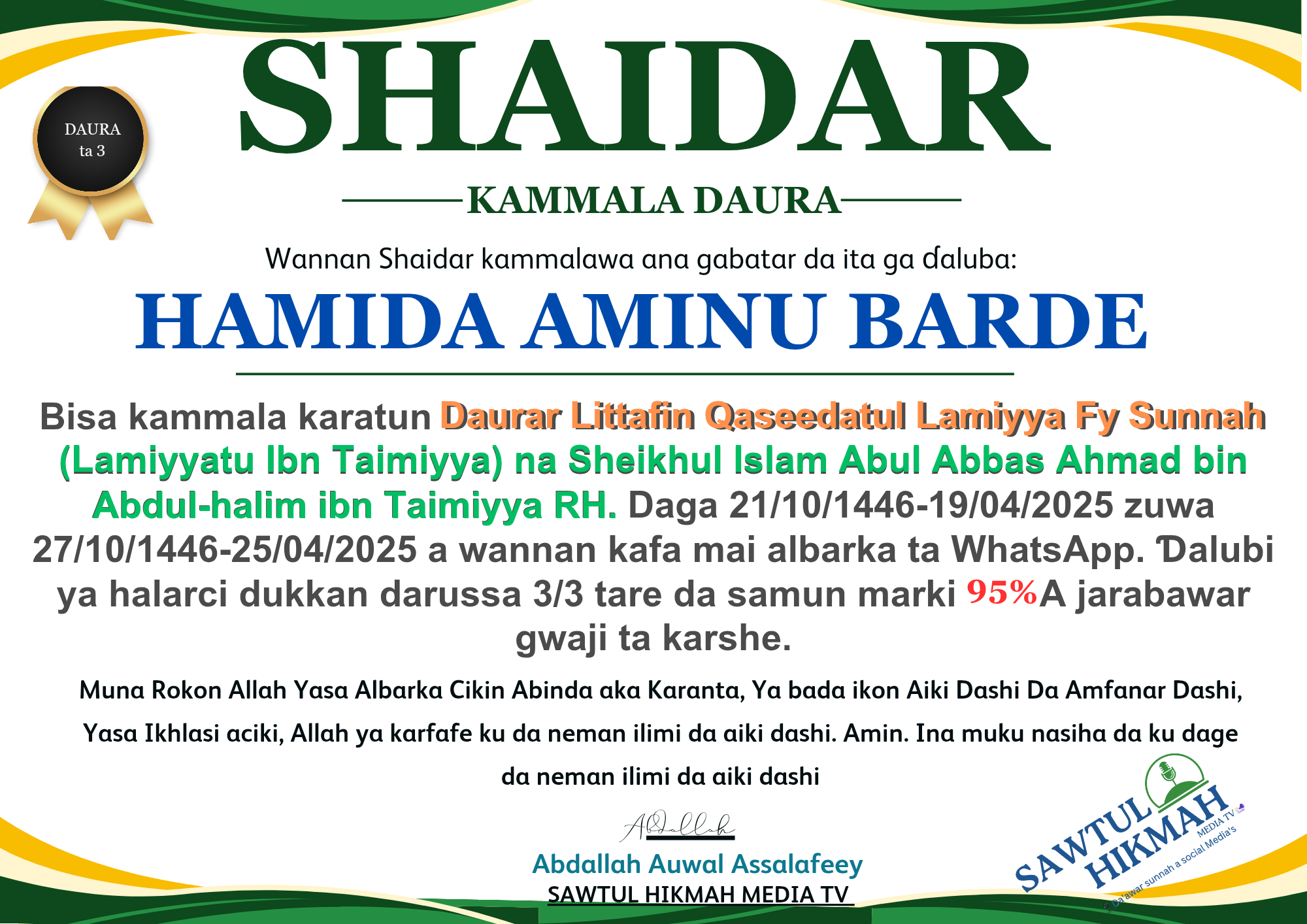 - Ustaz Abdallah Auwal Abdallah