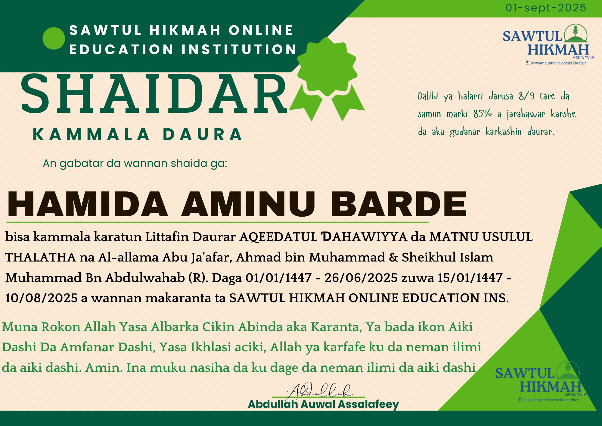 - Ustad Abou Khadeejatu Assalafeey